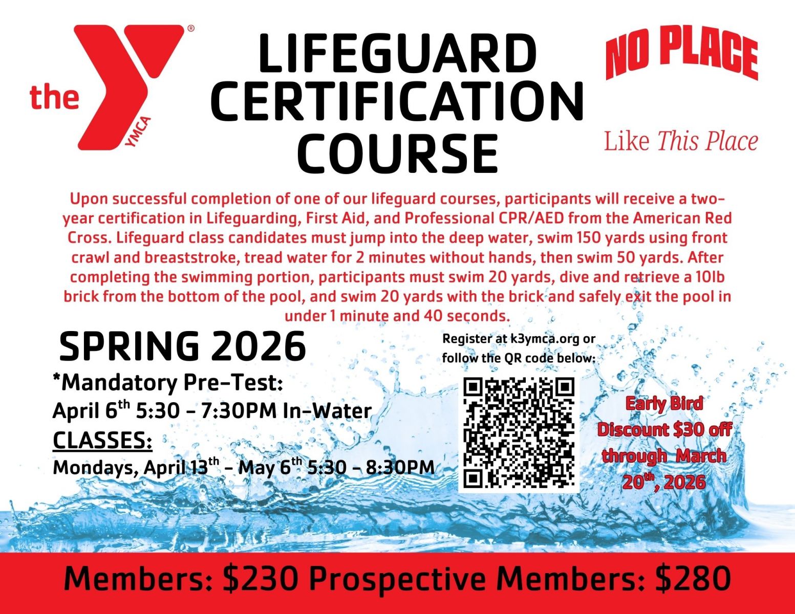 Are you getting ready for your first job, summer employment or just want to try something new? Lifeguarding is not only a fun job, but it is a great way to explore the employment options the field of aquatics offers. Lifeguards develop leadership, problem solving, decision-making and communications skills that are valuable in many areas of life. Become certified through this program that focuses on water rescue, safety, leadership development and personal growth. Upon completion, you will be qualified to work at an aquatics facility as a certified YMCA lifeguard.